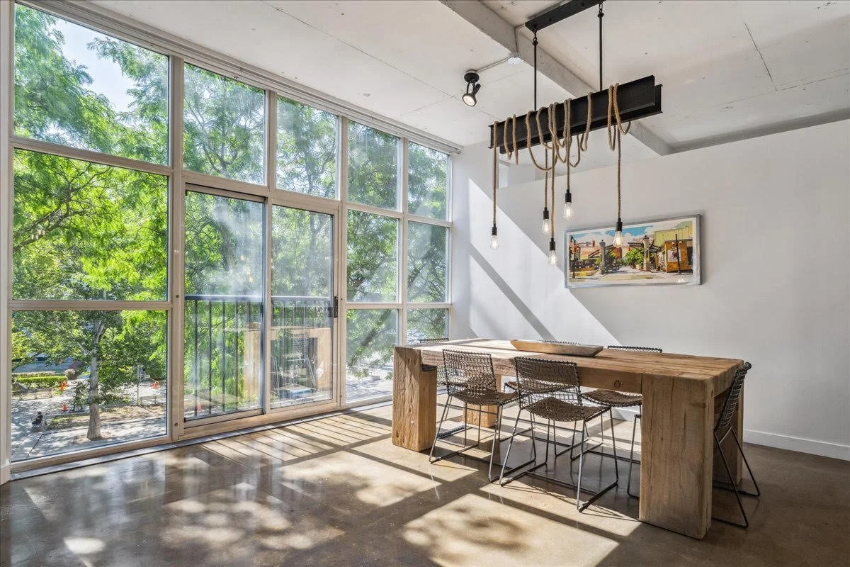 Rare offering in the sought-after Core Lofts. This SOHO-inspired corner unit offers just over 1,500 square feet of elevated living, beautifully finished with design-forward upgrades and a truly unique layout. With ten foot ceilings and expansive floor-to-ceiling windows along the north and east walls, the unit is bathed in natural light throughout the day. The east-facing windows look out onto tree-filled views, like your own private retreat in the heart of the city. Renovated in 2022, the kitchen features KitchenAid appliances, double-thick honed quartz countertops, custom cabinetry, a high-end Blanco sink, and a walk-in pantry…